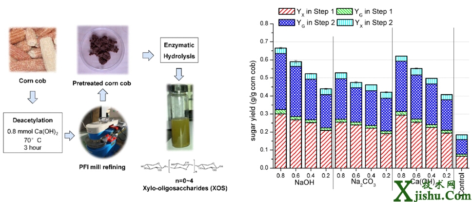 圖3. 脫乙;Y(jié)合PFI磨漿然后酶水解的工藝路線及其對(duì)酶水解總糖得率的影響