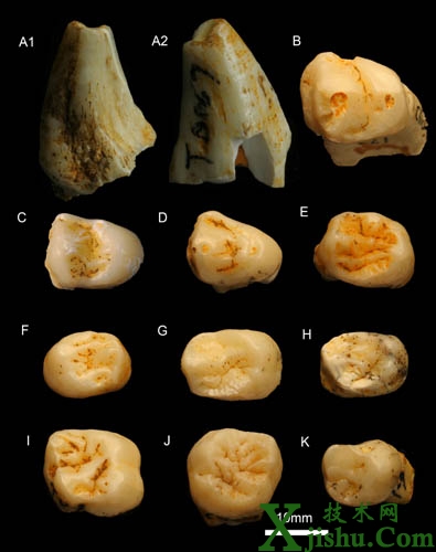 圖1 三合大洞化石猩猩上頜牙齒(王翠斌供圖)