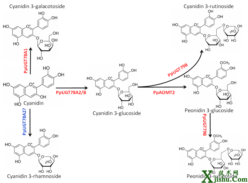 桃花青素修飾示意圖