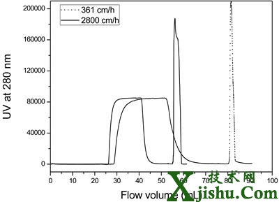 圖3. 不同流速下的PGMA-DVB-PEI的動(dòng)態(tài)蛋白載量