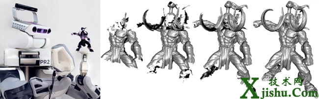 該論文的創(chuàng)新性在于提出一種全新掃描思路,通過試探性曲面重建預測,全面分析已有點云的品質,規(guī)劃掃描路徑,對低置信度的部位進行自動地掃描和拼接,最終得到一個高品質的點云模型。對于這篇文章,一向以嚴謹著稱的SIGA評委給出的評語為:“這種技術將會成為未來(三維重建)的一種行業(yè)標準方案。”