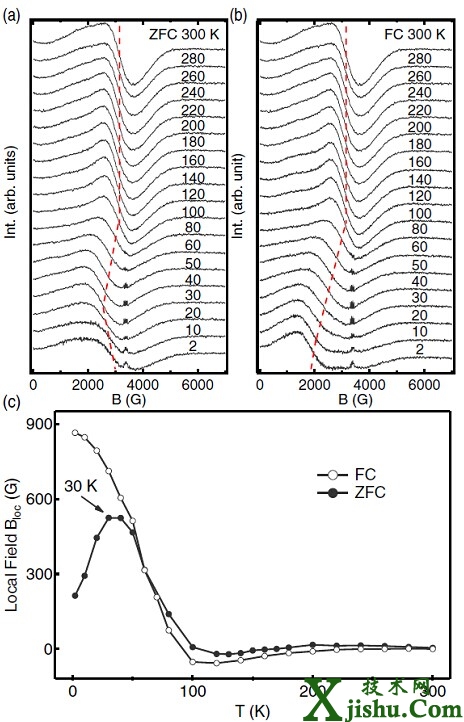 ZFC和FC電子自旋共振譜以及計算出的等效局域場,反映出其中弱鐵磁的出現(xiàn)和演化