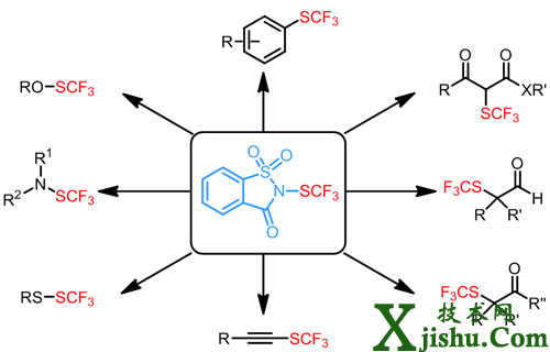 中國(guó)科學(xué)院上海有機(jī)化學(xué)研究所有機(jī)氟化學(xué)重點(diǎn)實(shí)驗(yàn)室沈其龍課題組一直致力于三氟甲硫基新方法和新試劑的研究。最近,該課題組發(fā)展了一個(gè)簡(jiǎn)單易得、高反應(yīng)活性的親電三氟甲硫基化試劑。該試劑以商品化的糖精作為原料,兩步反應(yīng)即可高效制備,而且該試劑對(duì)空氣和水穩(wěn)定。在溫和條件下,該試劑與一系列的親核試劑如醇、硫醇、脂肪胺、芳胺、炔烴、β-酮酸酯、醛和酮以及富電子芳烴反應(yīng),高產(chǎn)率地得到三氟甲硫基化的產(chǎn)物(Angew. Chem. Int. Ed. 2014, 53, 9316);谠撛噭┑难芯砍晒,課題組已申請(qǐng)了4項(xiàng)中國(guó)專利,并與百靈威化學(xué)技術(shù)有限公司(J&K)合作實(shí)現(xiàn)了商品化,同時(shí)與國(guó)外兩個(gè)公司的合作也在洽談中。