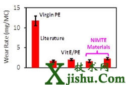 圖4 交聯(lián)超高分子量聚乙烯的磨損速率,較改性前降低80%以上
