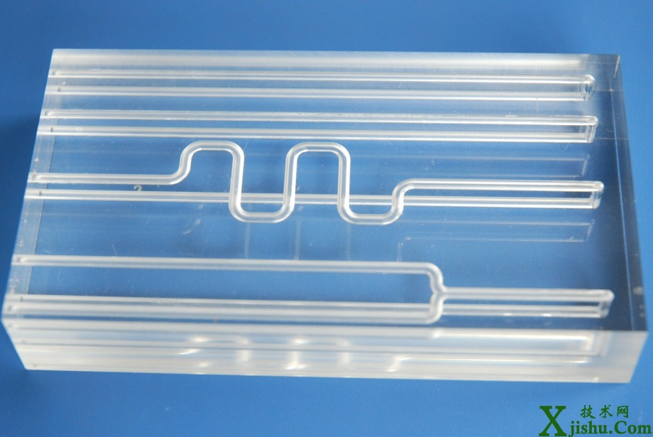 日前,依托于中國科學(xué)院蘇州生物醫(yī)學(xué)工程技術(shù)研究所的江蘇省醫(yī)用微細制造工程實驗室將精密加工技術(shù)與微納加工技術(shù)完美結(jié)合,研制出由多層有機玻璃(PMMA)健合而成的多岐管基板。該基板采用完全自主的結(jié)構(gòu)設(shè)計及加工工藝研制而成,溝道尺寸1-2mm,溝道層數(shù)大于2層,實現(xiàn)三維立體溝道制作。另外,采用微納健合技術(shù),不使用任何粘合劑,不會對流路內(nèi)部造成任何污染,具有生物兼容、耐壓性能好等特點,目前正在蘇州醫(yī)工所承擔(dān)的“863”項目高通量免疫發(fā)學(xué)發(fā)光分析儀試用。