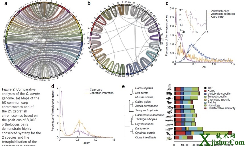 在研究所大規(guī)模測序平臺及高性能計算平臺的有力支撐下,該研究團隊完成了雌核發(fā)育鯉魚的基因組深度測序、精細圖譜繪制和基因組注釋。在遺傳圖譜信息的基礎(chǔ)上,科研人員利用基因組組裝結(jié)果,將鯉魚基因組定位到染色體上,得到了較完整的鯉魚精細圖譜。其基因組由16.9億堿基組成,含有52610個功能基因,約為多數(shù)硬骨魚類基因數(shù)目的兩倍。研究團隊從基因組尺度證實了鯉魚基因組的異源四倍體特征及其獨特的全基因組復(fù)制事件,分子鐘證據(jù)表明鯉魚基因組四倍化大約發(fā)生在820萬年前,是迄今在脊椎動物中發(fā)現(xiàn)的最近的全基因組倍增事件。