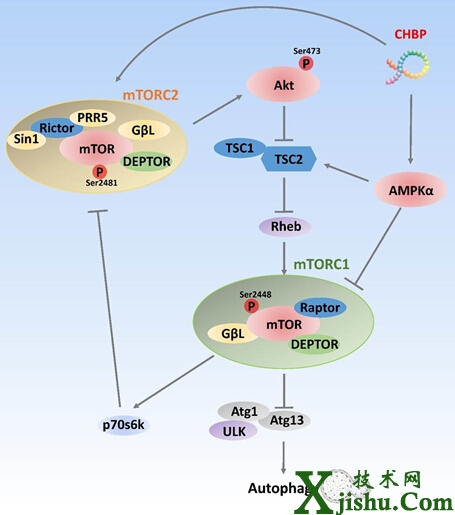 該研究團(tuán)隊(duì)?wèi)?yīng)用構(gòu)像約束的結(jié)構(gòu)優(yōu)化策略,設(shè)計(jì)以硫醚、亞砜等作為環(huán)合鍵,發(fā)展了微波協(xié)助的多肽固相合成方法,獲得了一系列代謝穩(wěn)定的HBSP環(huán)肽。其中,硫醚環(huán)肽CHBP表現(xiàn)出顯著提高的腎臟保護(hù)活性以及體內(nèi)、體外的代謝穩(wěn)定性,圓二色譜表明a-螺旋為其活性構(gòu)像。一系列腎臟保護(hù)作用試驗(yàn)顯示,在小鼠48-小時(shí)以及1-周腎臟缺血再灌注損傷模型上,一次劑量8 nmol/kg CHBP 相比于三次劑量8 nmol/kg HBSP,均表現(xiàn)出顯著提高的腎功能保護(hù)作用以及損傷修復(fù)作用,包括降低炎癥反應(yīng)和細(xì)胞凋亡。更有意義的是,基于抗體芯片和蛋白質(zhì)印跡的機(jī)理研究首次揭示,CHBP 通過(guò)抑制mTORC1和活化mTORC2來(lái)誘導(dǎo)自噬從而發(fā)揮腎臟保護(hù)功能。他們的工作提供了一類新穎而代謝穩(wěn)定的環(huán)肽作為治療腎臟缺血再灌注損傷的潛在藥物。