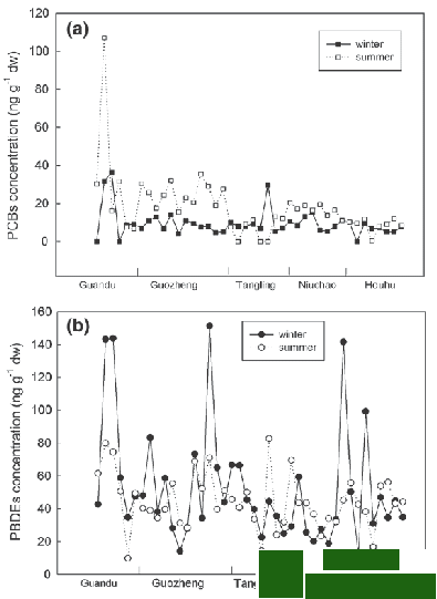 武漢東湖水體表層沉積物中總多氯聯(lián)苯和多溴聯(lián)苯醚含量的季節(jié)變化