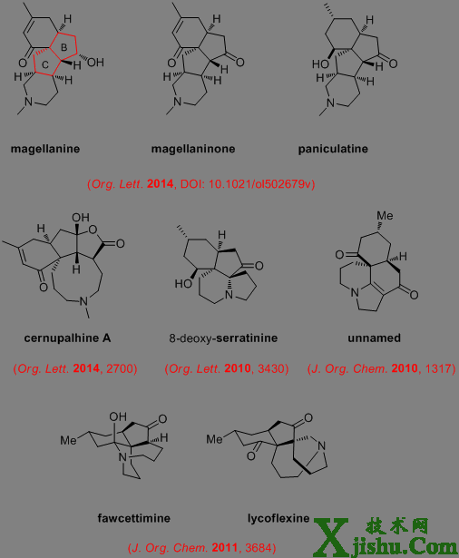研究組完成的復(fù)雜石松生物堿全合成代表例子