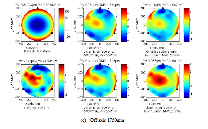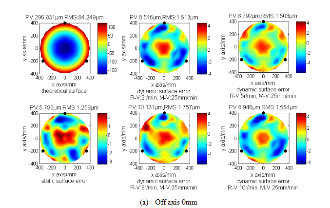 4m f/1.5主鏡加工中,不同離軸位置情況下磨盤靜態(tài)面形誤差與多種轉(zhuǎn)速下動(dòng)態(tài)面形誤差對(duì)比圖