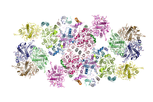 此次所解析的菠菜PSII-LHCII超級(jí)復(fù)合物的總分子量約1.1兆道爾頓(megadalton)(1,100 kDa),形成了一個(gè)同質(zhì)二聚體的超分子體系。每個(gè)單體中包含了25個(gè)蛋白亞基、105個(gè)葉綠素分子、28個(gè)類(lèi)胡蘿卜素分子和眾多的其它輔因子。研究結(jié)果首次揭示了這一高度復(fù)雜的超分子體系的總體結(jié)構(gòu)特征和各亞基的排布規(guī)律。