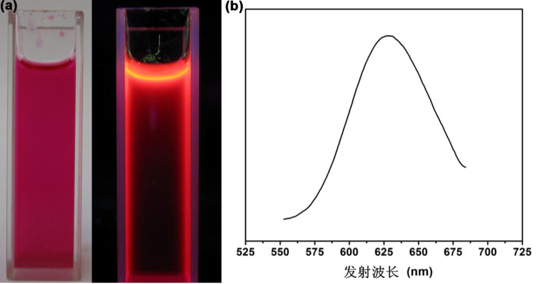 圖1:(a)具有紅光發(fā)射的溴化乙錠單體的光學(xué)照片;(b)制備的二維有機(jī)多孔晶體材料的發(fā)射光譜。