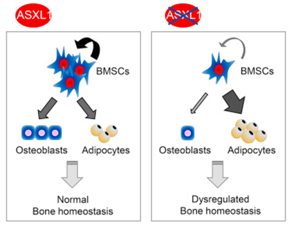 ASXL1基因的體細(xì)胞突變發(fā)生在髓系惡性疾病中,包括骨髓增生異常綜合征(myelodysplastic syndrome)、慢性粒單核細(xì)胞白血。╟hronic myelomonocytic leukemia)和急性髓系白血。╝cute myeloid leukemia)。該研究揭示了ASXL1通過(guò)影響骨髓基質(zhì)多能祖細(xì)胞功能和骨骼發(fā)育在Bohring-Opitz綜合征發(fā)病中起重要作用,為代謝性骨骼疾病及癌癥的臨床治療提供了新的機(jī)遇。