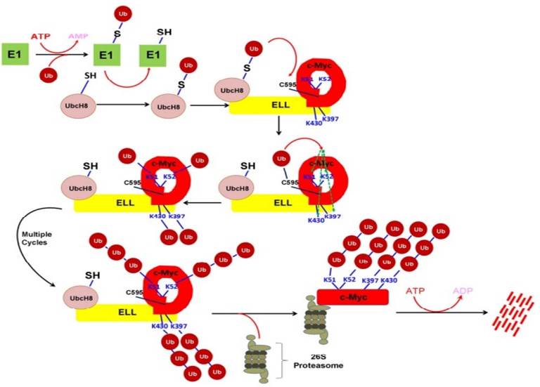中國科學院水生生物研究所研究員肖武漢課題組近期研究表明,ELL可以直接結合原癌基因c-Myc,并作為E3泛素連接酶,促進c-Myc的泛素化降解,從而抑制腫瘤的生長。UbcH8是這一通路中的泛素綴合酶(ubiquitin-conjugating enzyme)。研究人員還鑒定了ELL的活性位點(C595)。如果該位點發(fā)生突變,ELL就無法促進c-Myc的泛素化和降解。進一步研究表明,ELL通過介導的c-Myc的降解來抑制腫瘤細胞的生長和腫瘤的形成;钚晕稽c突變的ELL(C595A)不僅喪失了對細胞增殖和腫瘤生長的抑制能力,還特別獲得了促進腫瘤轉移的能力。這項研究不僅揭示了ELL的新功能以及發(fā)揮功能的分子機制,而且還可能為揭示腫瘤轉移的分子機制提供線索。這項研究近期發(fā)表于Nature Communications 雜志上。