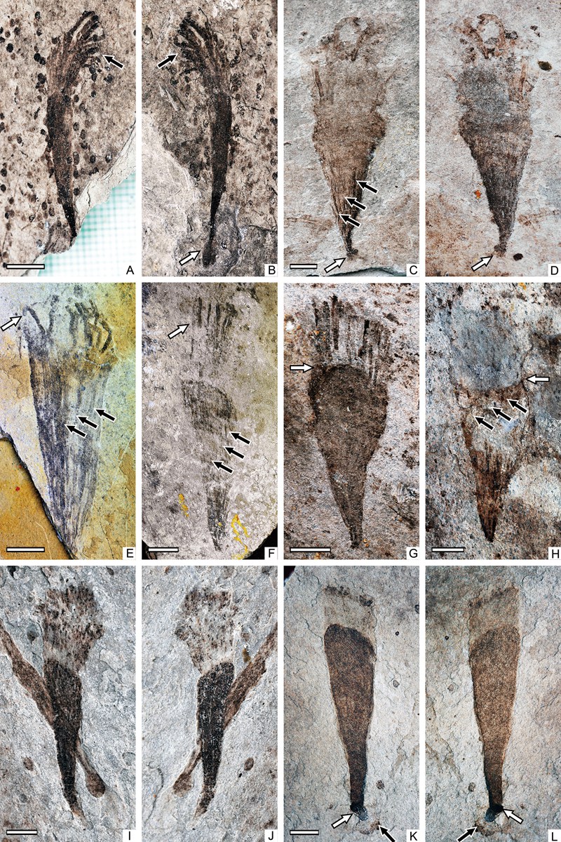 為了對(duì)藍(lán)田生物群中后生動(dòng)物化石有一個(gè)更加深入的認(rèn)識(shí),中國(guó)科學(xué)院南京地質(zhì)古生物研究所博士萬(wàn)斌等通過(guò)新近采集的標(biāo)本,結(jié)合先前報(bào)道過(guò)的化石材料,對(duì)其中的后生動(dòng)物化石進(jìn)行了系統(tǒng)分類和詳細(xì)描述。依據(jù)形態(tài)特征將這些化石分為4個(gè)新屬和5個(gè)新種,包括:藍(lán)田蟲屬(Lantianella gen. nov.),光滑藍(lán)田蟲(Lantianella laevis gen. et sp. nov.)和環(huán)紋藍(lán)田蟲(L. annularis gen. et sp. nov. );皮原蟲屬(Piyuania gen. nov.),杯狀皮原蟲(Piyuania cyathiformis gen. et sp. nov.);前川蟲屬(Qianchuania gen. nov.),梭狀前川蟲(Qianchuania fusiformis gen. et sp. nov.)和休寧蟲屬(Xiuningella gen. nov.),稀少休寧蟲(Xiuningella rara gen. et sp. nov.)。這些化石都是以碳質(zhì)壓膜形式保存,具有較為復(fù)雜的形態(tài)分異和可能的解剖學(xué)結(jié)構(gòu)。將其形態(tài)特征和解剖結(jié)構(gòu)與化石的和現(xiàn)生的相似類型進(jìn)行比較,它們與宏體的藻類和真菌存在較大的區(qū)別,而與一些后生動(dòng)物(如刺胞動(dòng)物)具有較大的相似性。這些動(dòng)物化石為科學(xué)家認(rèn)識(shí)從成冰紀(jì)到寒武紀(jì)轉(zhuǎn)換時(shí)期宏體多細(xì)胞真核生物的演化和海洋氧化事件提供了新依據(jù)。