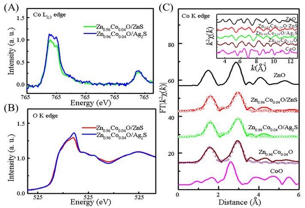 近期,中國科學技術(shù)大學教授韋世強課題組在稀磁半導(dǎo)體量子點的磁性操縱方面取得了重要進展。針對磁性離子間固有的反鐵磁相互作用抑制了稀磁半導(dǎo)體量子點磁性可調(diào)這一科學難點問題,他們首次從理論上提出可以通過形成量子點核殼結(jié)構(gòu)來調(diào)控摻雜磁性離子能級在帶隙間的相對位置,進而操縱磁相互作用的方法。在實驗中,他們在5nm直徑的Co摻雜ZnO量子點外面包覆一層0.5 nm厚的半導(dǎo)體材料ZnS或Ag2S殼層以后,成功地將Co離子之間的反鐵磁相互作用轉(zhuǎn)變成鐵磁相互作用。在上海光源BL08U1-A和BL14W1實驗站,研究人員獲得的軟、硬X射線吸收譜學實驗結(jié)果,印證了包覆ZnS或Ag2S殼層引起的Co3d能級在ZnO帶隙間位置的改變是導(dǎo)致ZnO量子點中摻雜Co離子間磁性相互作用轉(zhuǎn)變的微觀原因。該研究成果以Realizing Ferromagnetic Coupling in Diluted Magnetic Semiconductor Quantum Dots 為題發(fā)表于美國化學會的J. Am. Chem. Soc.(2014, 136, 1150-1155)。